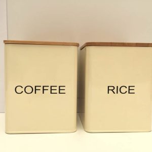 Tarro beige con tapa madera coffee / rice