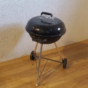 Barbacoa negra circular con tapa