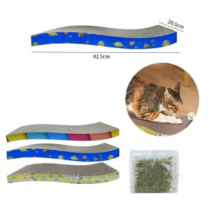 RASCADOR DE CARTÓN PARA GATOS FORMA DE OLA + HIERBA FELINA