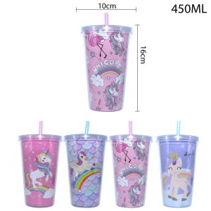 VASO PLASTICO CON DISEÑOS DE UNICORNIO 450ML