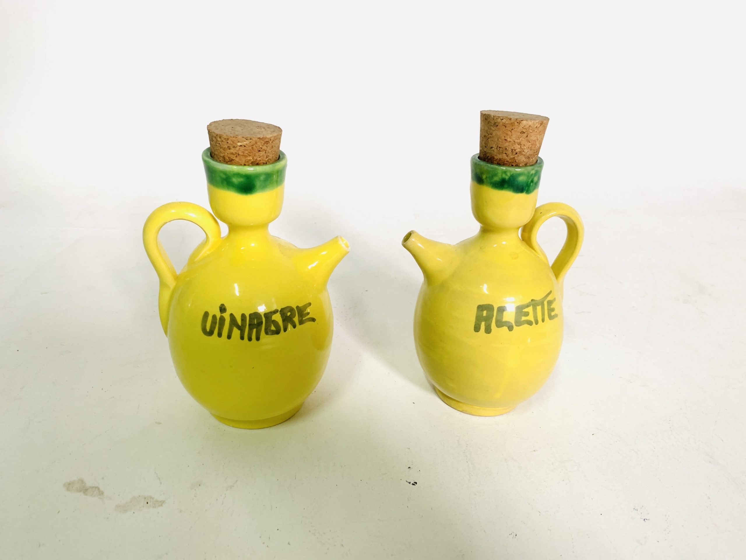Aceitera y vinagrera barro amarillas
