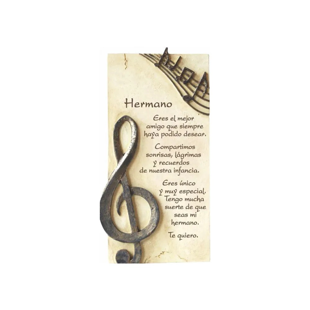 Piedra con frase dedicada a la Hermano de la colección Arts in Stone. Las piedras están realizadas en Polystone, un material de aspecto parecido a la piedra pero que al ser moldeable permite realizar diferentes acabados y formas. Todas las piedras de Arts in Stone son de gran calidad y están pintadas a mano. Se pueden colgar o apoyar sobre superfície plana y horizontal. Las piedras vienen presentadas con una caja de cartón semi abierta (deja al descubierto la cara de la piedra).