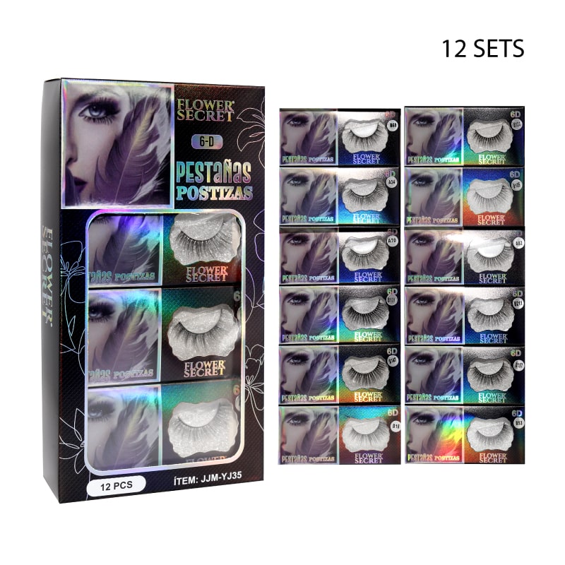 - Venta por paquete de 12 sets de 2 pares de pestañas.